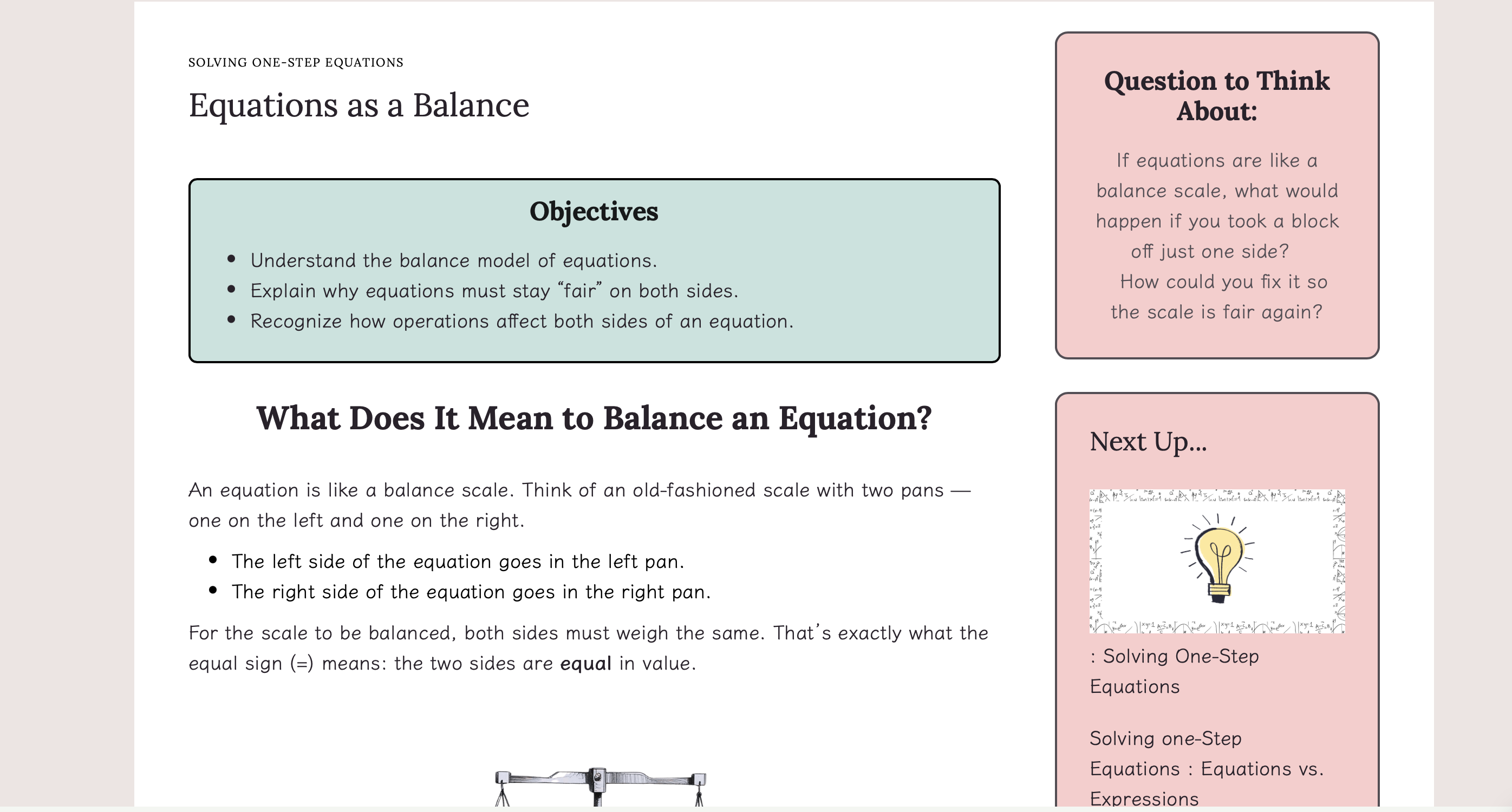 Each lesson includes a short written explanation + practice problems so students can learn and apply immediately.